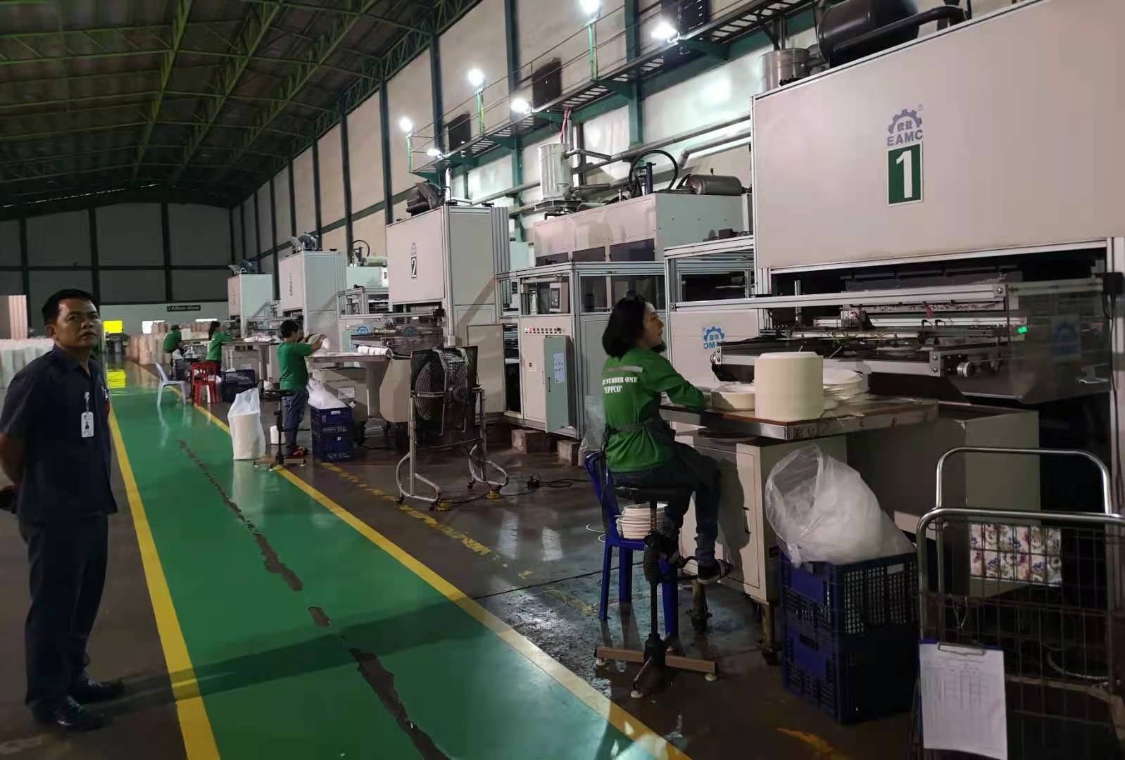 2016-8,泰國著名蔗渣漿廠EPPCO紙漿模塑項目,第一期購買4條EAMC生產(chǎn)線投入使用。EPPCO是泰國最大的蔗渣漿廠,中國許多高端的紙漿模塑廠家都采用EPPCO生產(chǎn)的蔗渣漿。目前已經(jīng)投入使用。之后第二期又購買了浙江歐亞聯(lián)合裝備集團(tuán)有限公司輕工50條紙漿模塑生產(chǎn)線。
