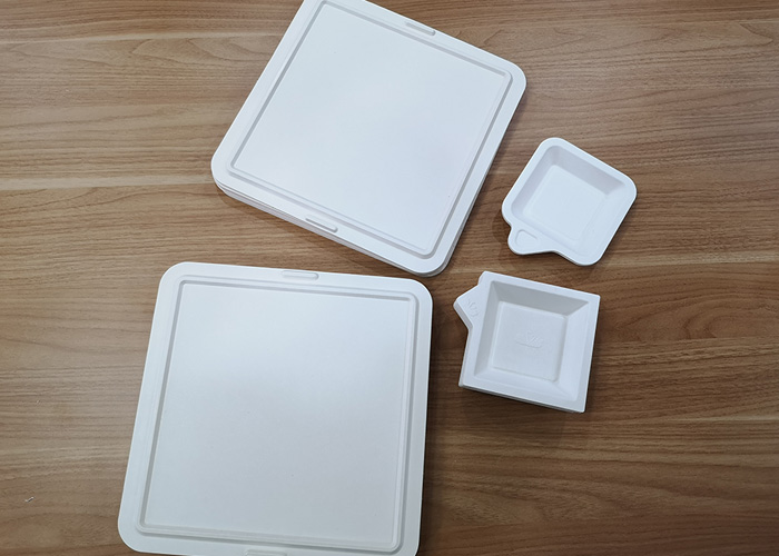 甘蔗渣纖維是中長纖維,具有強度適中、韌性適中的優(yōu)點,是目前來說最合適紙漿模塑制品的原料,因此甘蔗渣漿制品是目前適用范圍最為廣泛的。目前餐盒餐具類產(chǎn)品多使用甘蔗渣纖維,還有一些高端的手機托、化妝品包裝也有用這個原料。
